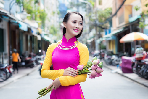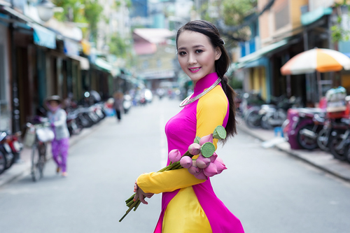 Vẻ đẹp của Á khôi Trịnh Thu Thảo làm rạng ngời cả khu phố cổ.