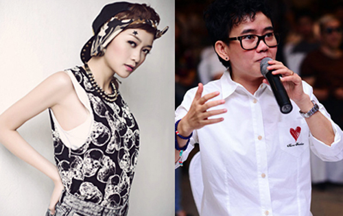 Ảnh: Giám khảo Mr.Đàm và thí sinh Huyền Minh (Anh Thúy) trên sân khấu The X-Factor